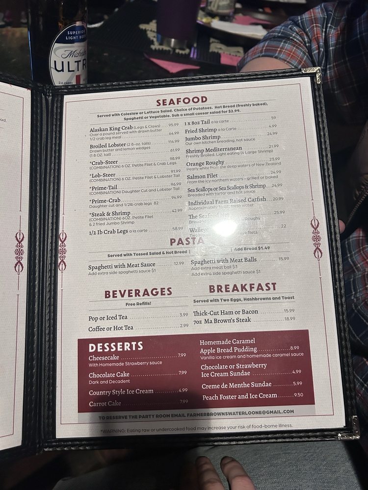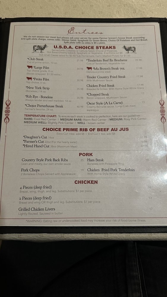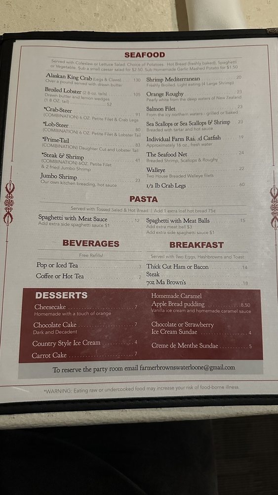 Welcome to Farmer Brown's Steak House, a beloved culinary gem nestled in Waterloo, NE. Renowned for its inviting, old-fashioned atmosphere, this steakhouse promises a delightful dining experience that's perfect for families and groups alike. The menu boasts an impressive selection of expertly cooked steaks, with the prime rib earning high accolades from diners who rave about its tenderness and flavor.